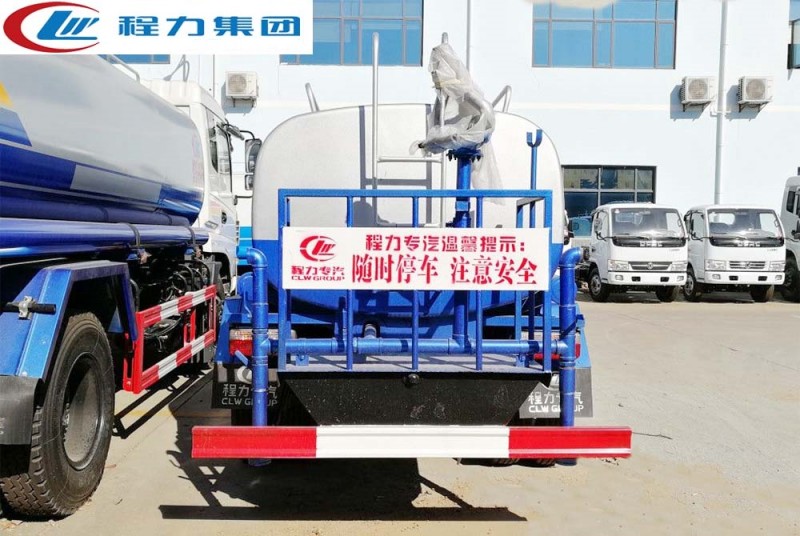 罐體有效容積5立方,罐體采用國標(biāo)Q235碳鋼,罐體厚度4mm,自吸自排水泵,帶前沖裝置,后灑裝置,左右側(cè)噴裝置,尾部帶有安全操作平臺,帶消防接口,自流口,兩根輸水管,尾部綠化高炮,綠化高炮可調(diào)節(jié)直沖,大雨,中雨,毛毛雨霧,可以連續(xù)調(diào)節(jié),360度旋轉(zhuǎn);