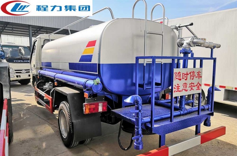 罐體采用毫米厚武鋼產容積板焊接而成,內設防浪板,程力大功率灑水泵,可自吸水,加壓排水,前沖15米寬,后灑壓塵,側噴花灑噴頭,尾高綠化高位水炮,射程28米,可調節水柱、大中雨、毛毛雨等,可做臨時消防滅火用。 選裝配置:威龍泵、指示燈、氣動閥控制、噴藥機組、其它特殊要求等。 隨車附件:隨車工具1套、尖嘴噴頭2個、鴨嘴噴頭2個、花灑噴頭2個、水炮1個、吸水管2根、小工具鎖2個、各類密封圈及墊片若干。整車說明書、保修手冊、底盤合格證。