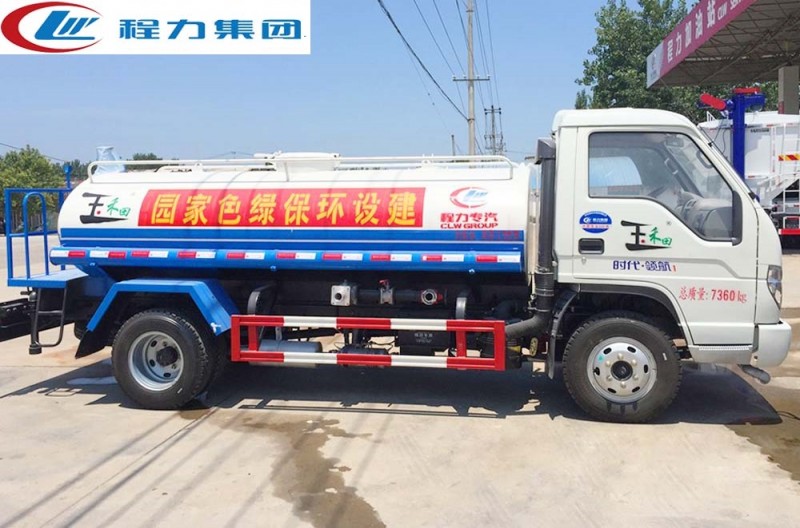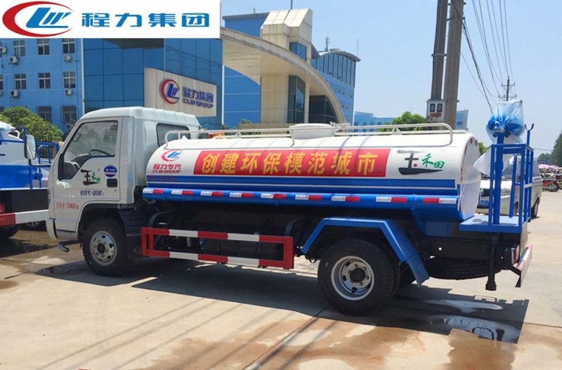 該車型為不上戶車型。灑水車專用部分由罐體、水泵、取力器、傳動軸、球閥、噴灑裝置等部件組成。采用國家定型產品,具有性能穩定、工作可靠、通用適配等特點。灑水車罐體結構為橢圓形或方圓形,采用武鋼優質碳鋼制作,先進的對焊接工藝,罐體內設防蕩防波隔板,下端有通孔,罐體成型后高壓氣體試漏檢測,使罐體具有強度高、重心穩、車輛運載安全平穩等特點。