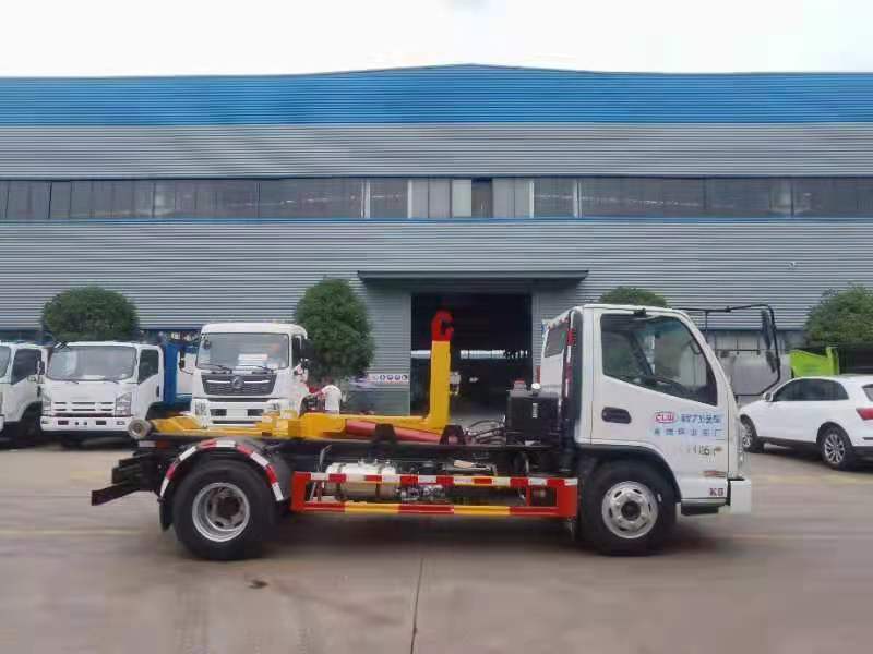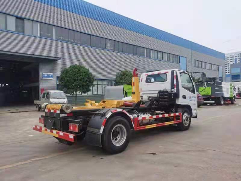 上裝配置:強度合金鋼一體式主勾臂,可選(直臂或伸縮臂),加強型副梁,鑄鋼尾托輪,采用威森博樂多路閥、液壓閥,電控室內外液壓操控裝置,上裝最大提升能力5T-7T,?液壓完成上箱+下箱+鎖緊+自卸等作業,實現一車配多箱的循環轉運。