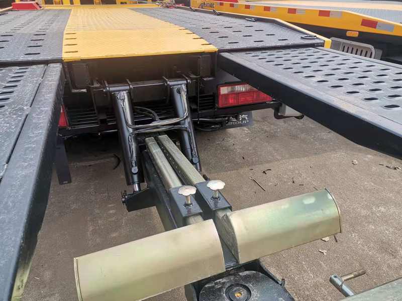 上裝配置:3噸上裝,4噸卷揚,20米鋼絲繩,有后托臂,主板約4.2米,尾板1米.寬2.3米,雙側聯動操作.可做全液壓翻轉尾板、液壓伸縮尾板及一體板,配警燈喊話器一套.輔助小車一套,四根捆綁帶,L型拖叉壹對,旋轉筒壹對,底盤合格證,整車合格證,保修手冊。(注意:藍牌一拖二,上戶需要拆除后托臂,伸縮尾板,伸縮油缸,警燈,安裝后防護.)