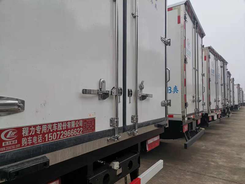程力冷藏車(chē)廂體采用真空吸附、液壓吸附一體成型生產(chǎn)線(xiàn)制造,三明治復(fù)合粘接,保溫性能達(dá)到國(guó)家A級(jí)標(biāo)準(zhǔn)。內(nèi)外壁選用國(guó)內(nèi)優(yōu)質(zhì)玻璃鋼,中間保溫層聚氨脂膠復(fù)合,廂板厚度8CM,地板采用鋁花紋防滑板,門(mén)邊條采用迷宮式橡膠密封條。廂體周邊鋁合金型材包邊,不銹鋼包角,不銹鋼門(mén)鎖,不銹鋼門(mén)框及合頁(yè),廂體內(nèi)節(jié)能LED照明燈,4.2米以上箱長(zhǎng)標(biāo)配單側(cè)門(mén)。箱體內(nèi)可以安裝肉鉤導(dǎo)軌。