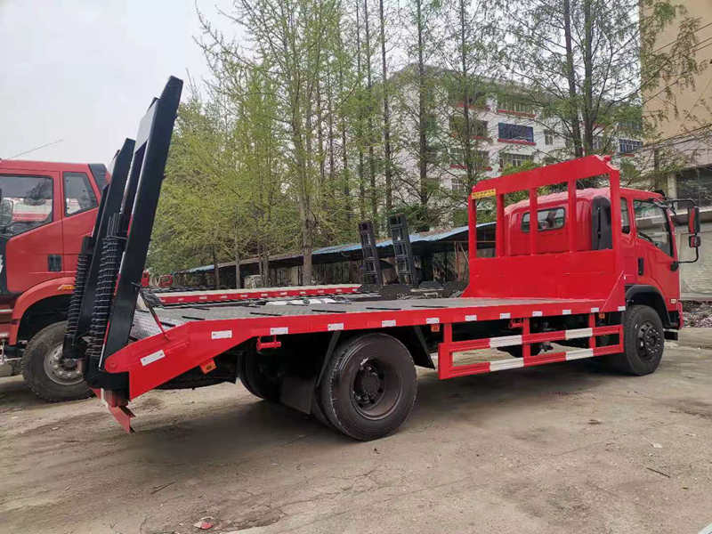 這臺東風華神D912平板拖車,采用玉柴四缸160馬力,8檔變速箱,9噸后橋,8.25R20鋼絲胎。整車長8.1米,平板面可達5米,非常適合運輸130以下的挖掘機。